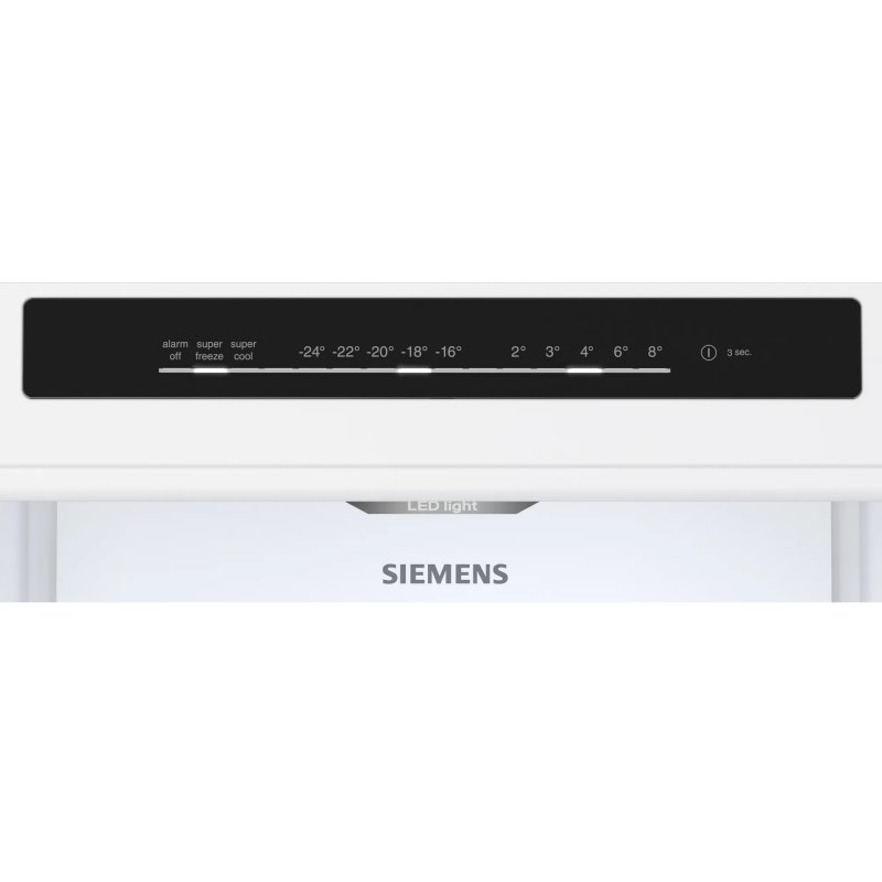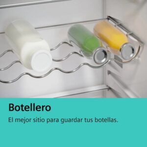 - Control e indicadores: Alarma de avería, Alarma de temperatura, Alarma puerta abierta, Indicador temperatura congelador, Indicador temperatura refrigerador, Interruptor supercongelación, Interruptor superrefrigeración