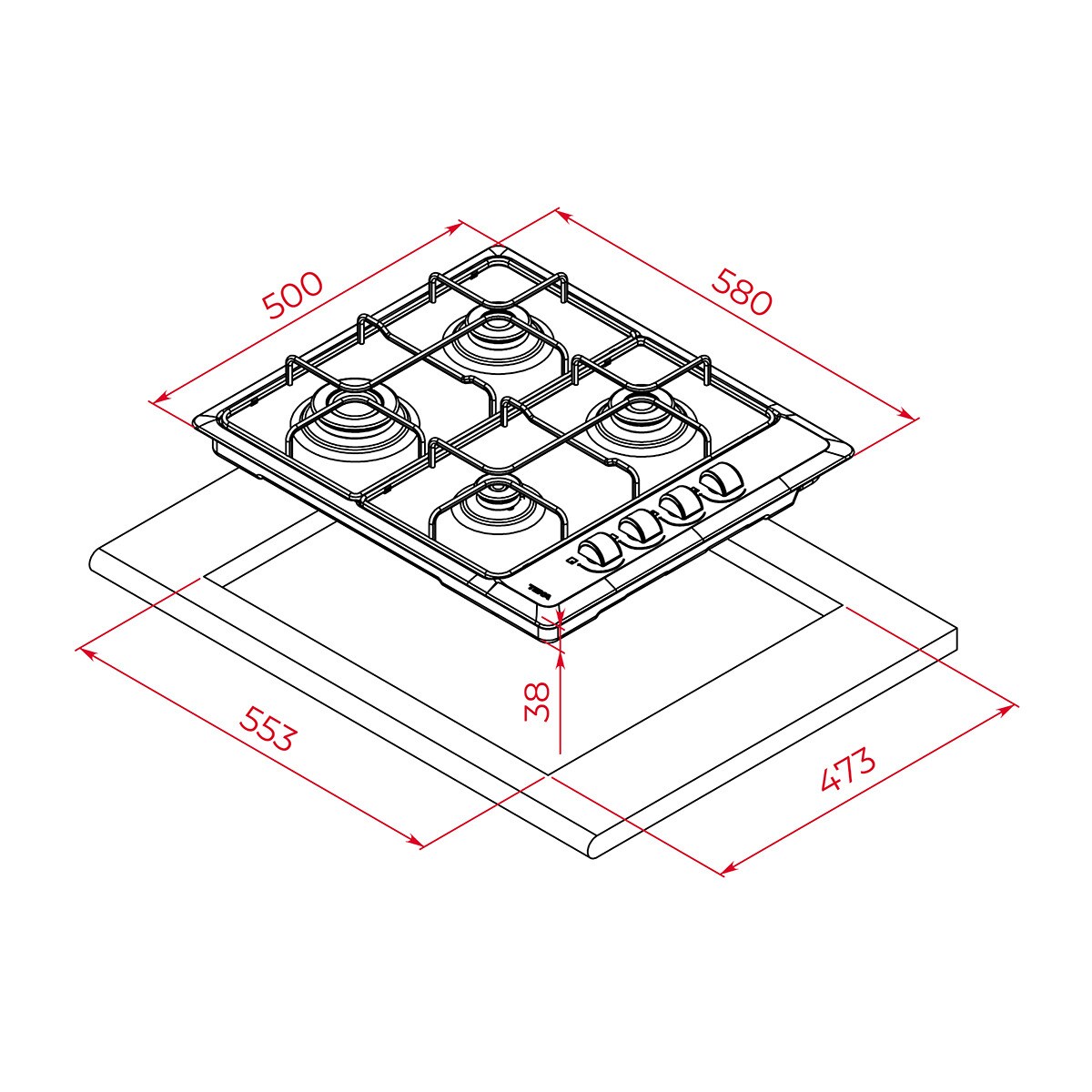 - 4 quemadores de gas: