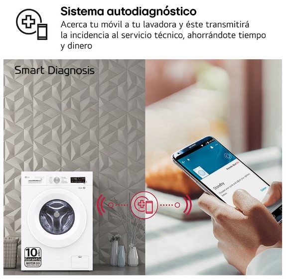 - Smart Diagnosis™: Acerca tu teléfono móvil a la lavadora y ésta transmitirá la incidencia al servicio técnico, ahorrándote tiempo y dinero.